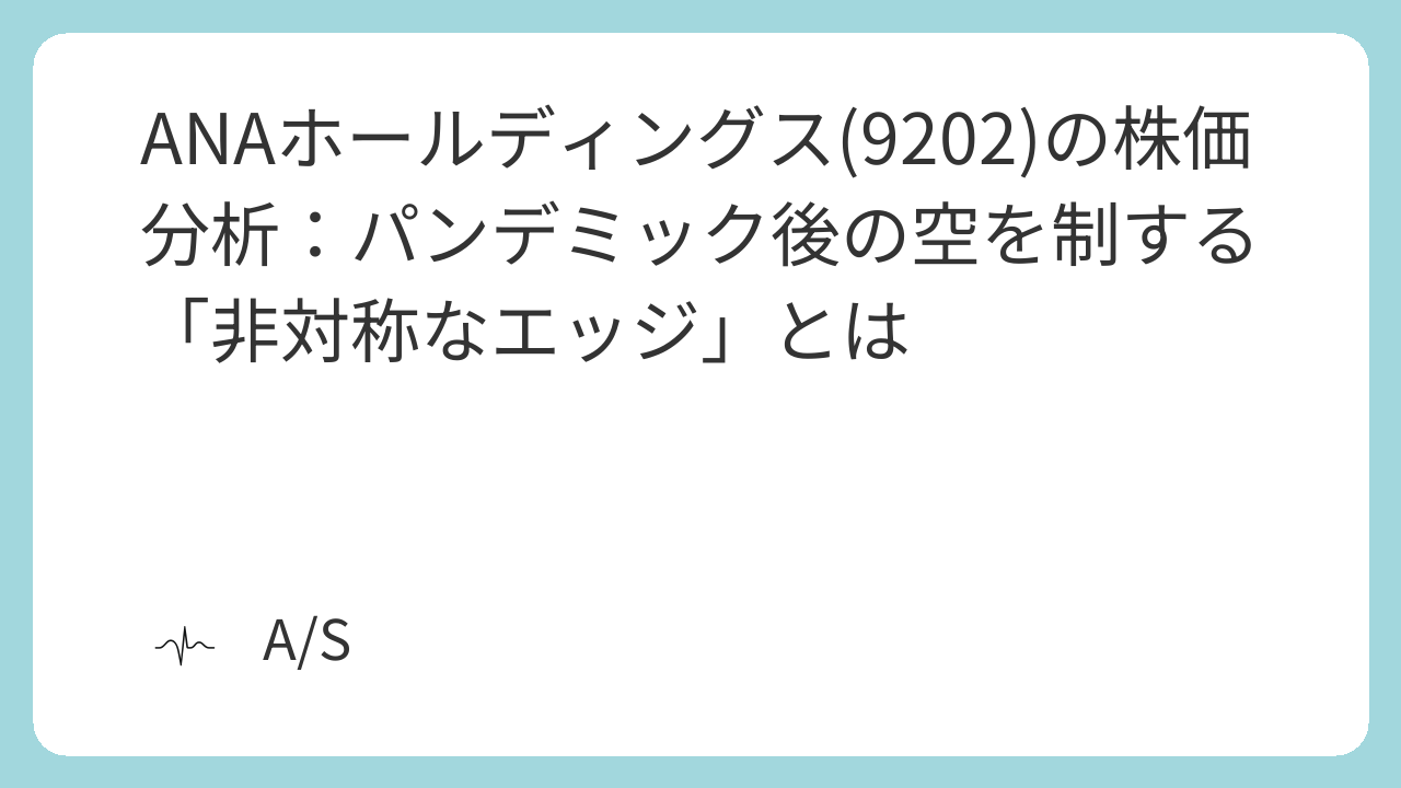 - 「非対称性」の観点からは、市場がANAを単一の航空会社として評価し、内包する安定資産(FFP、発着枠)の価値を過小評価している可能性があり、サム・オブ・ザ・パーツ分析によって投資機会が見出されるかもしれない。