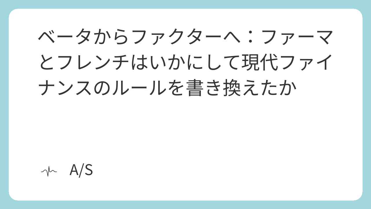 | ファーマ=フレンチの3ファクターモデル | Fama, French | 1993年 | 1. 市場リスク (Mkt-Rf) 2. サイズ (SMB) 3. バリュー (HML) |