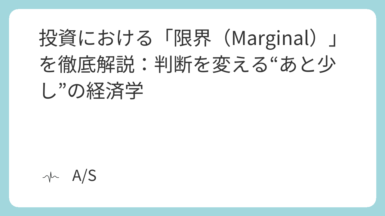 投資判断の多くは、「続けるべきか、やめるべきか」「追加すべきか、売却すべきか」といった選択の連続です。こうした場面で、限界的な視こころを持つことは、感情や過去のコストに惑わされず、より合理的な結論を導くための羅針盤となります。