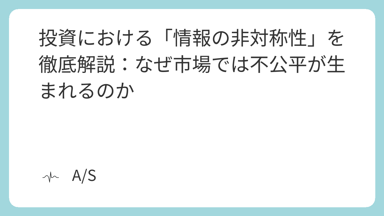 当メディアが掲げる「Asymmetry Signal」という名称は、まさにこの情報の非対称性に由来します。情報の非対称性は、市場の根源的な特性であり、それ自体が収益機会としての「非対称性」と、市場の効率性を阻害する「摩擦」の両面を持っています。