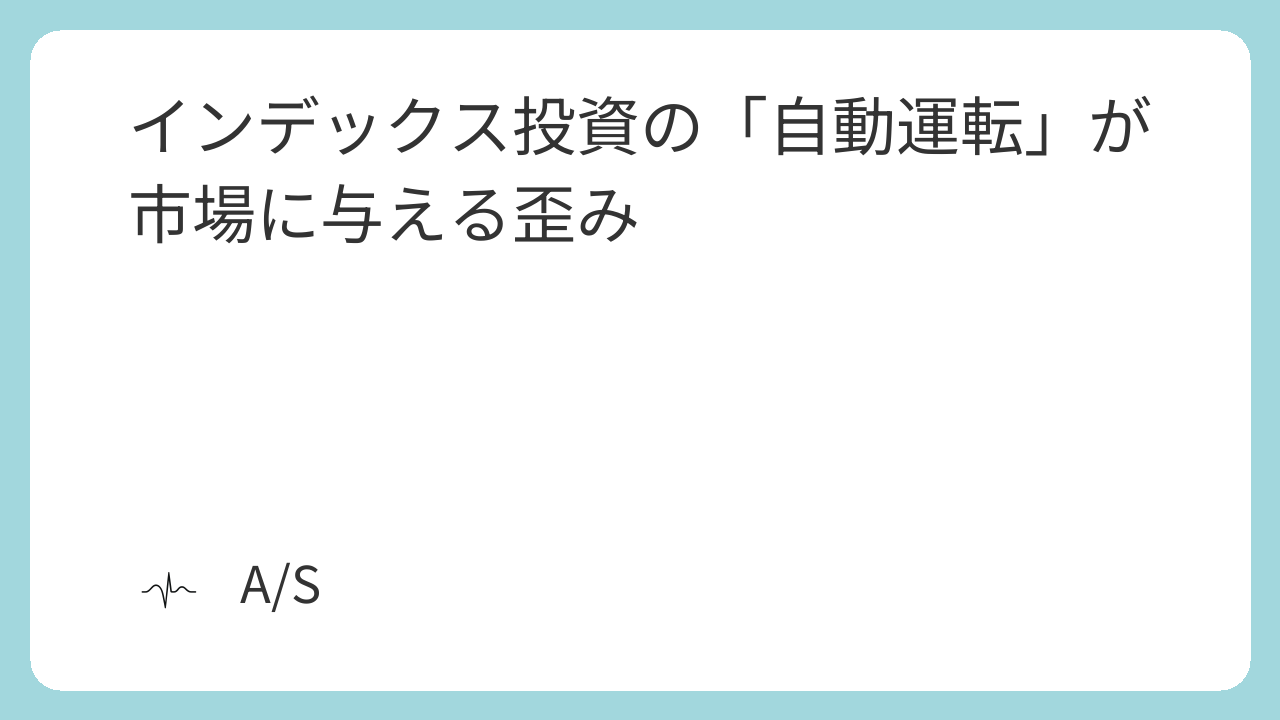 - インデックス投資は、市場に対して中立な行為ではなく、その普及が市場に様々な「歪み」をもたらしています。