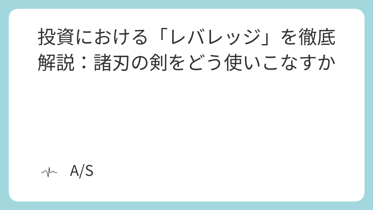 この記事では、リターンとリスクを増幅させる強力な力、レバレッジについて解説しました。