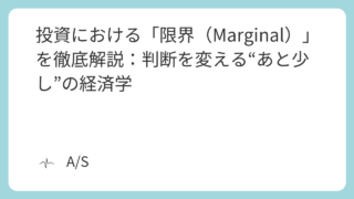 投資の意思決定を変える「限界」という概念を徹底解説。限界効用や限界費用など、”あと少し”の変化を分析する経済学の視点で、サンクコストの罠を回避し合理的な判断を下す方法を学びます。
